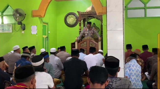 Jeneponto, 9 Mei 2025 – Dalam rangka menjalin kedekatan dengan masyarakat sekaligus menyampaikan pesan-pesan kamtibmas, Kasat Binmas Polres Jeneponto AKP M. Natsir, S.Sos bersama sejumlah personel Binmas melaksanakan kegiatan Safari Jum”at di Masjid Nurul Yaqin, Dusun Pa’rasangan Beru, Desa Pa’rasangan Beru, Kecamatan Turatea, Kabupaten Jeneponto, pada Jumat siang sekitar pukul 12.00 WITA.