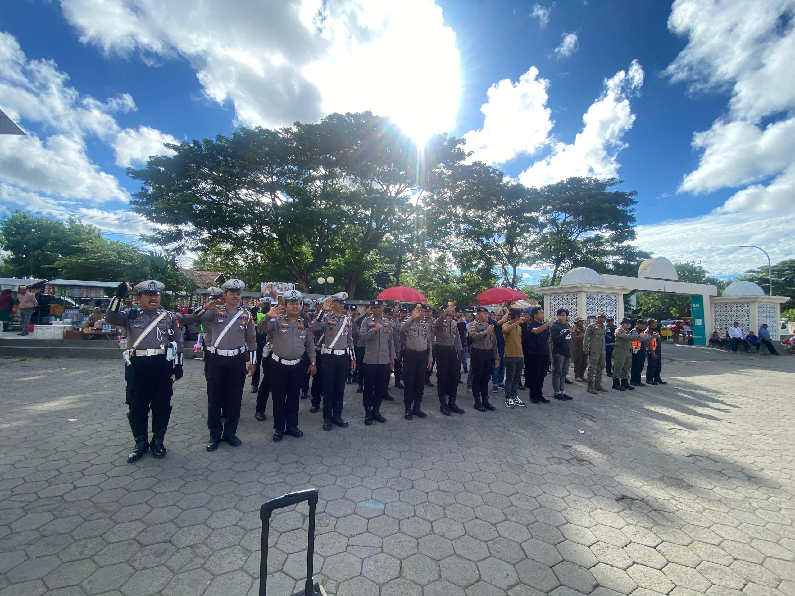 Pengamanan dilakukan secara menyeluruh, mencakup pengaturan lalu lintas, penjagaan di titik kumpul, serta pengawasan terhadap barang-barang milik jamaah. Personel kepolisian juga telah disiagakan sejak pagi hari guna mengantisipasi kemacetan di sekitar lokasi acara, mengingat tingginya arus kendaraan yang mengantar jamaah ke masjid.