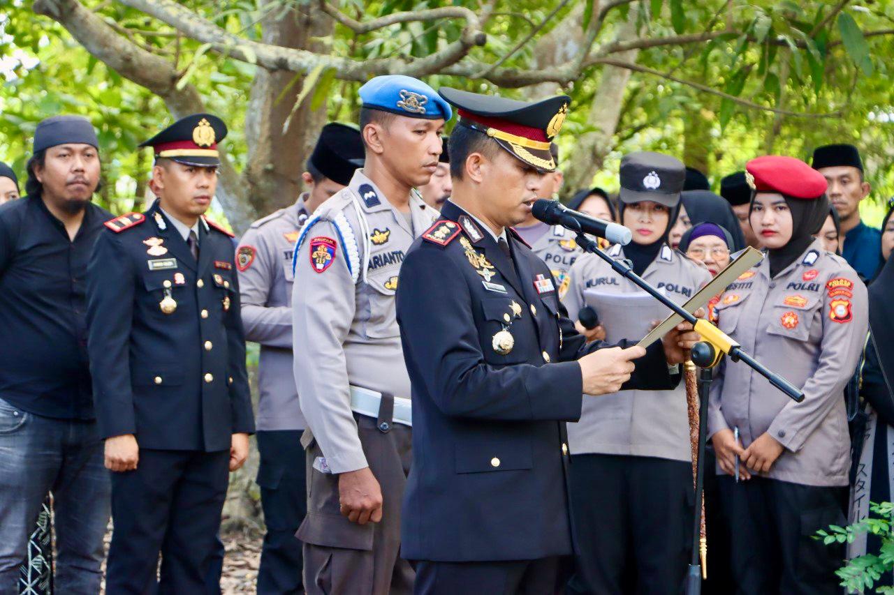 Polres Takalar menggelar upacara pemakaman secara kedinasan bagi almarhum AIPTU Ince Muh. Riswan, S.H., sebagai bentuk penghormatan terakhir atas pengabdiannya selama berdinas di Kepolisian Republik Indonesia.