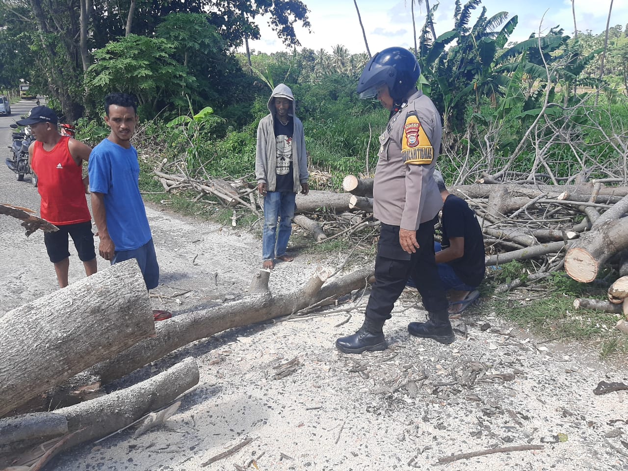 Melihat kondisi tersebut, Aiptu H. Syafaruddin Y. berinisiatif turun langsung bersama masyarakat untuk mengevakuasi batang pohon dari badan jalan. Ia juga memanfaatkan momen tersebut untuk mengajak warga binaannya agar terus menjalin kerjasama dalam menjaga keamanan dan ketertiban lingkungan.