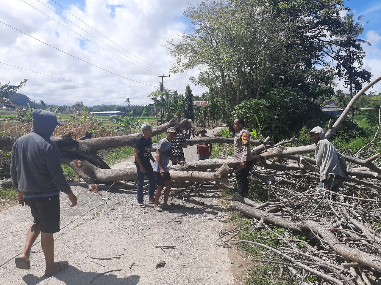 Pohon besar yang tumbang tersebut diduga sudah rapuh akibat kropos termakan usia, hingga akhirnya roboh dan menghalangi akses jalan warga. Meski tidak menimbulkan korban jiwa, insiden ini sempat mengganggu kelancaran arus kendaraan di jalur tersebut.