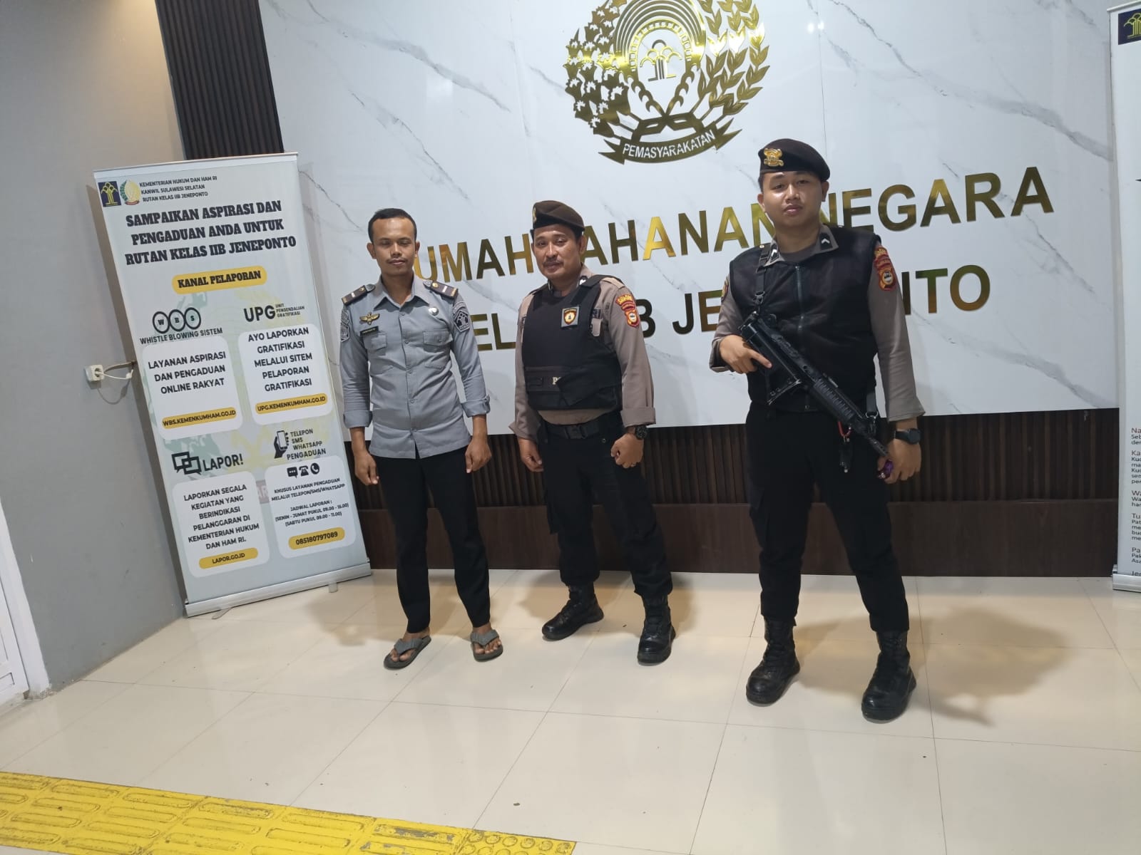 Tidak hanya itu, dalam patroli malam tersebut, personel juga menyambangi Rumah Tahanan (Rutan) Kelas IIB Jeneponto yang terletak di Empoang Selatan, Kecamatan Binamu, Kabupaten Jeneponto. Kegiatan ini dilakukan sebagai bagian dari upaya koordinasi dan pengawasan guna mengantisipasi potensi gangguan keamanan di dalam rutan.
