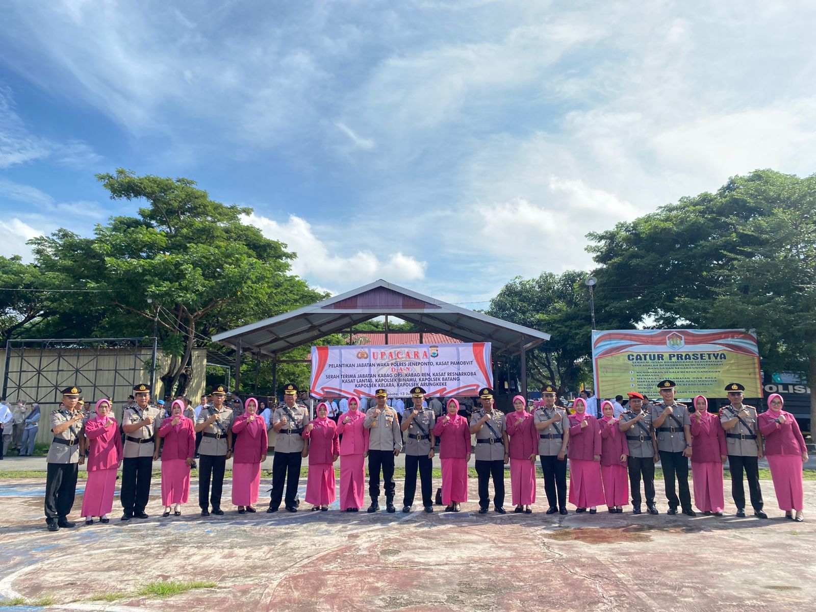 Dalam upacara tersebut, dilakukan pelantikan pejabat baru untuk posisi Wakapolres Jeneponto yang kini dijabat oleh Kompol Sahabuddin, S.H., M.A.P., serta Kasat Pamobvit Polres Jeneponto oleh Iptu H. Noer Syamsul Bacri.